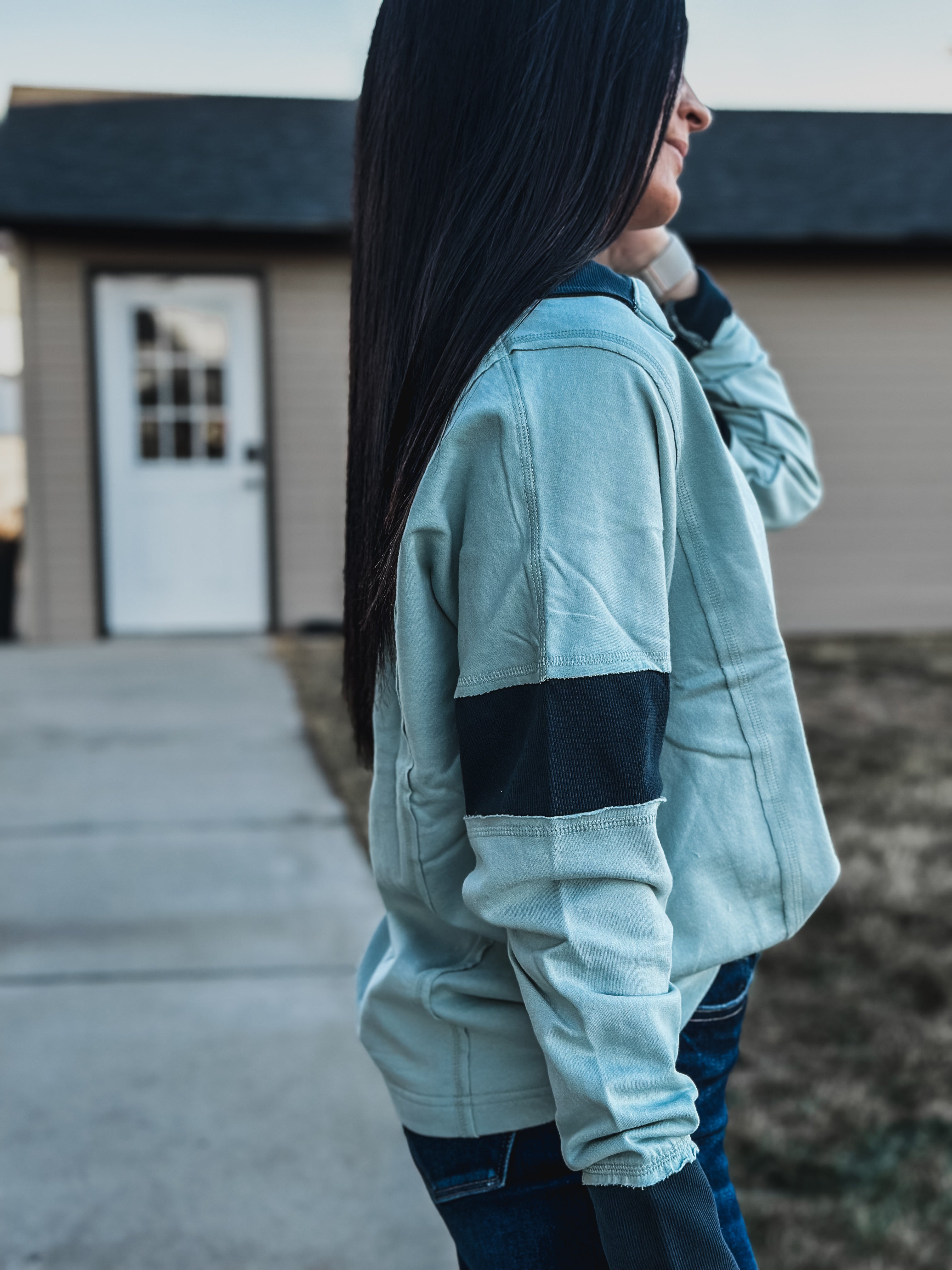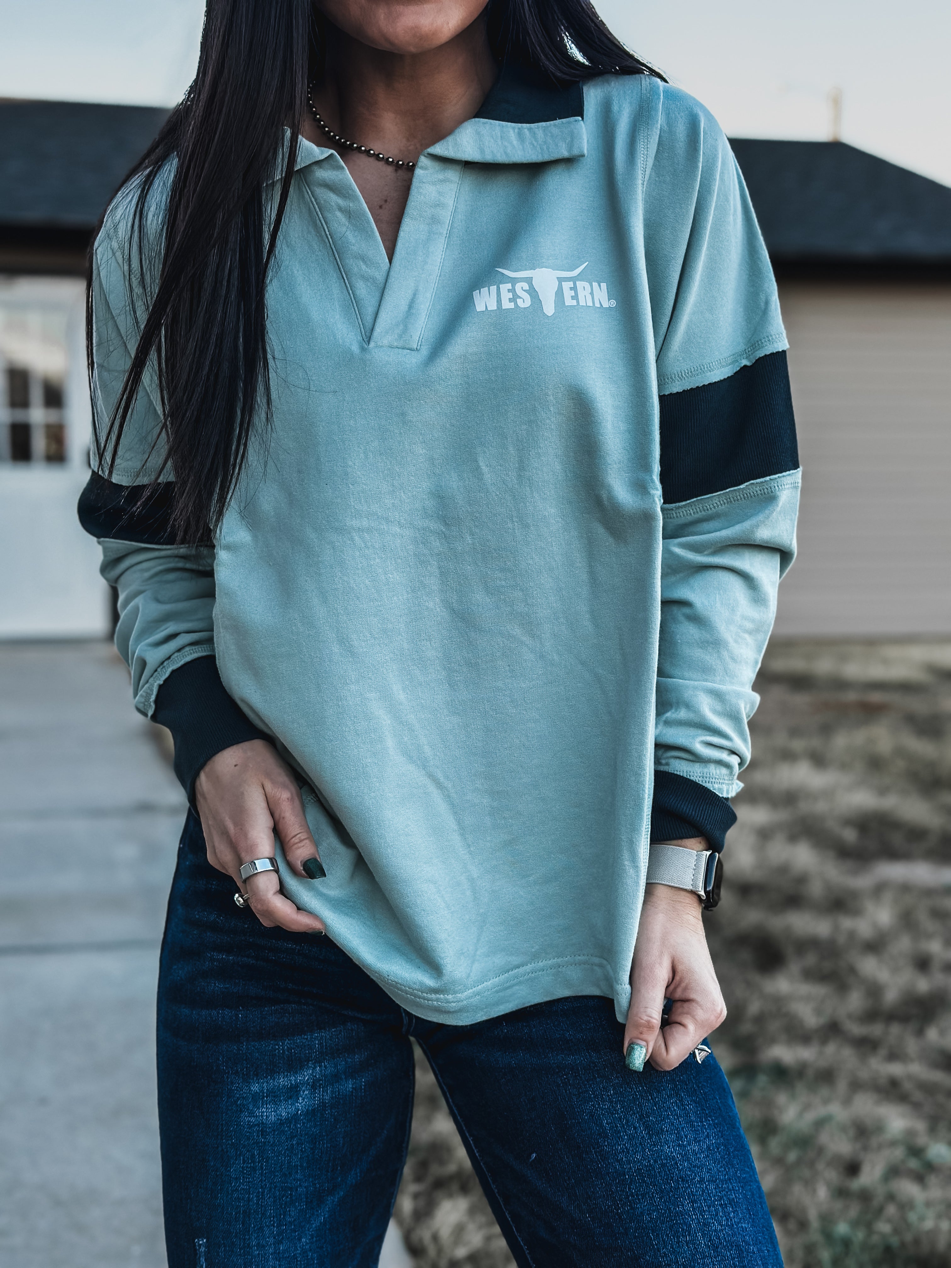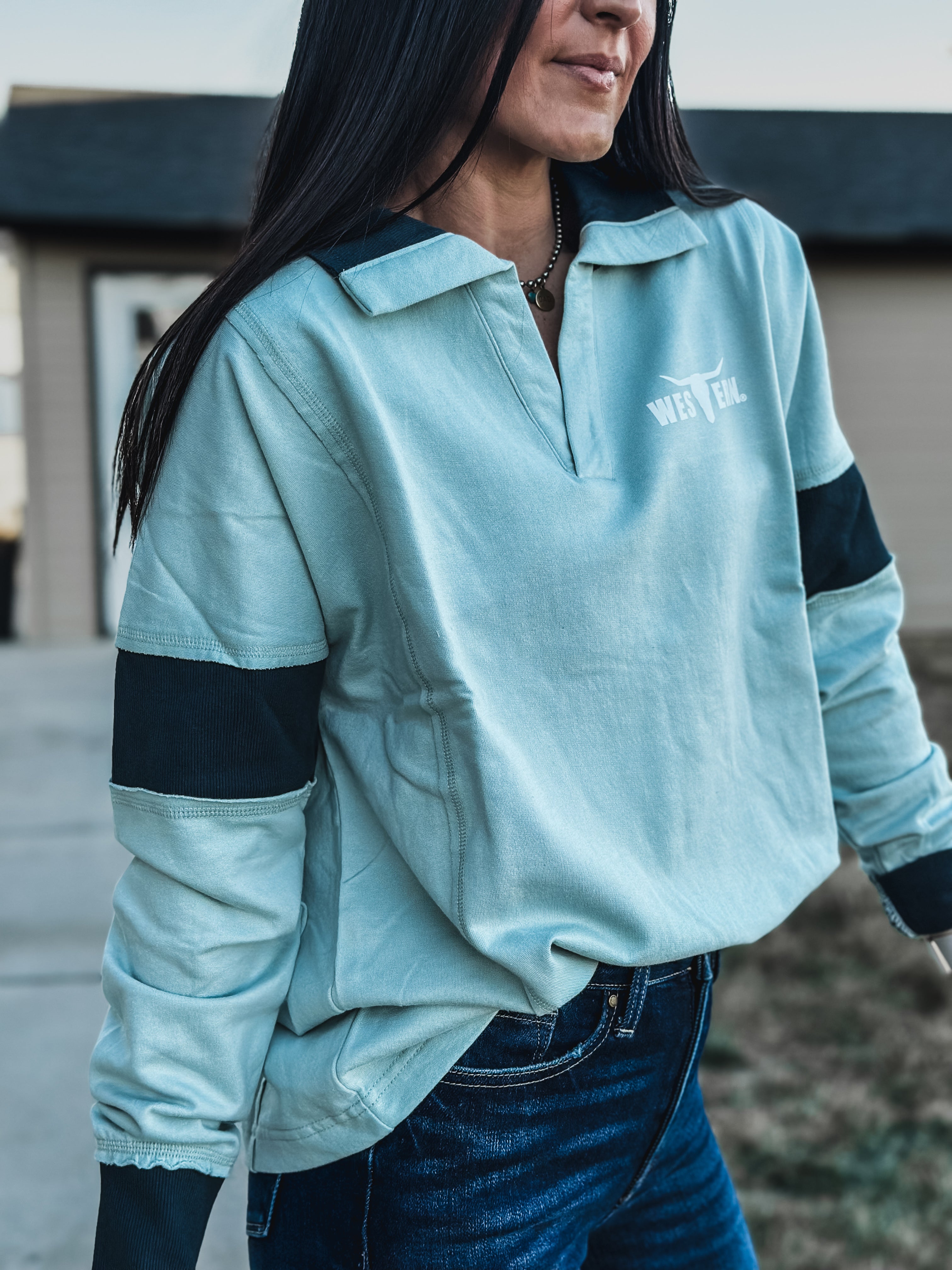 Brand Blue Collar Contrast Pullover