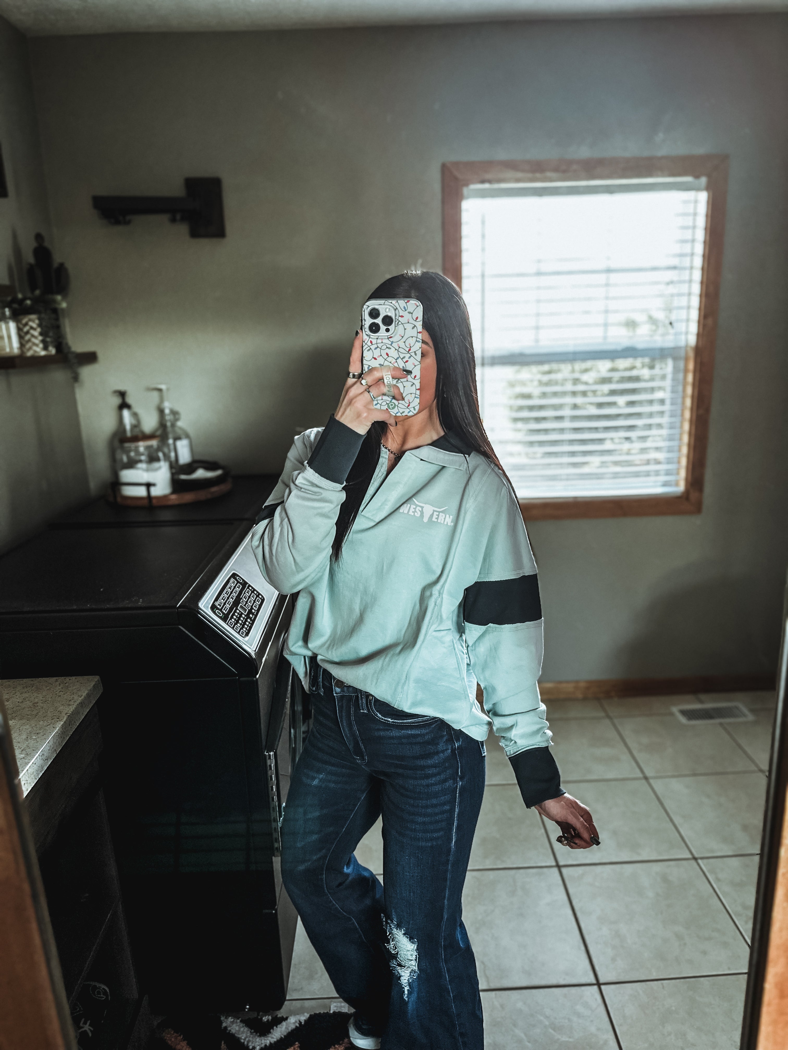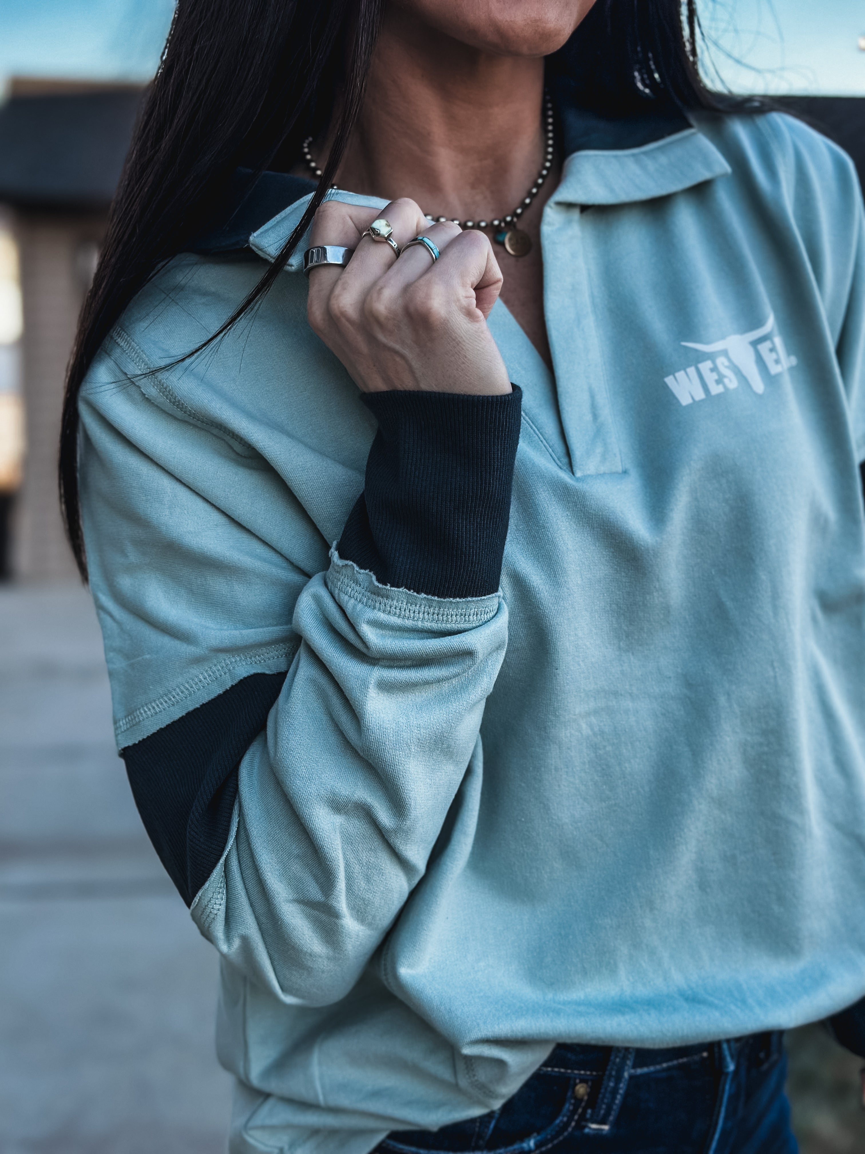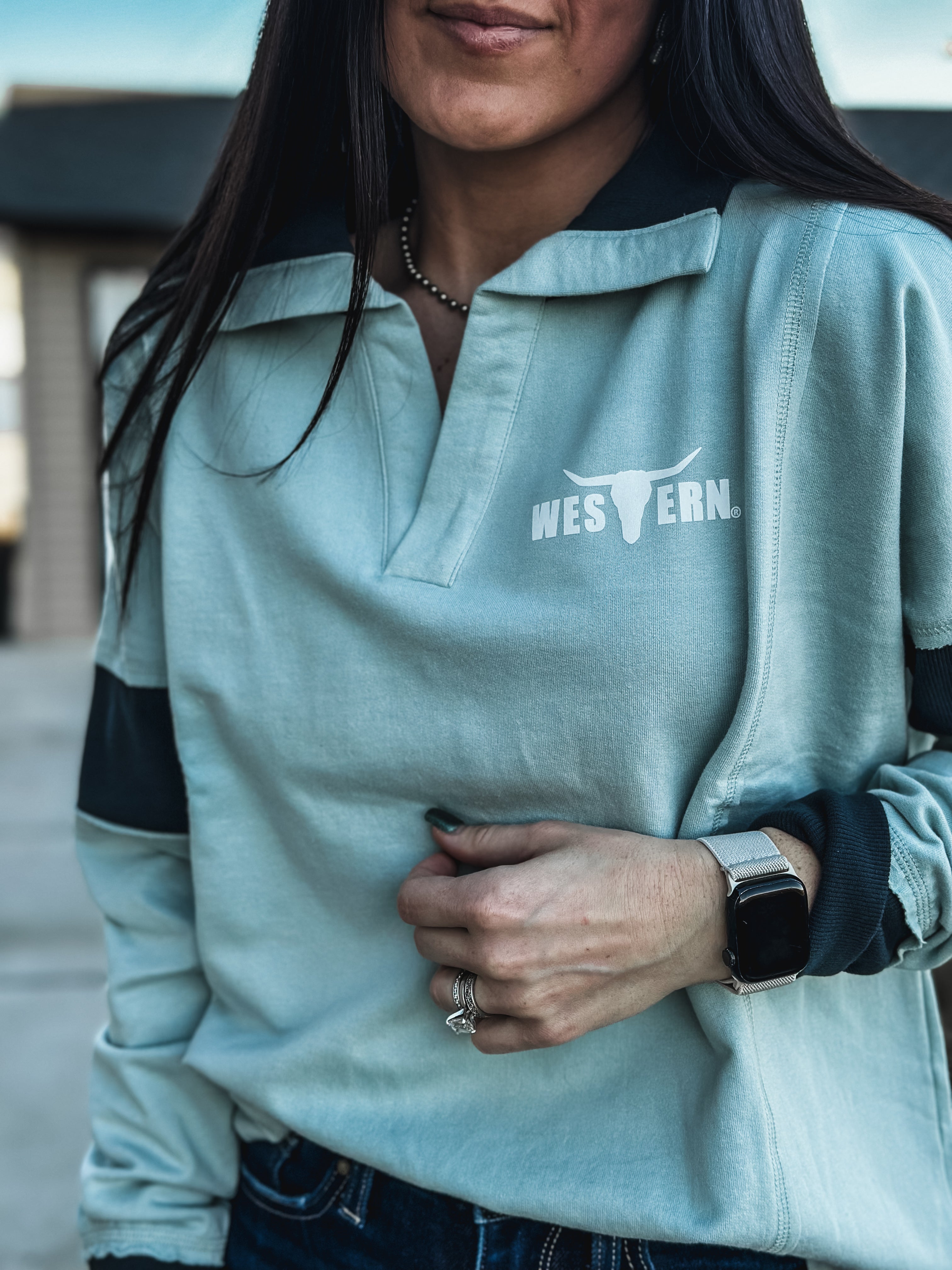 Brand Blue Collar Contrast Pullover