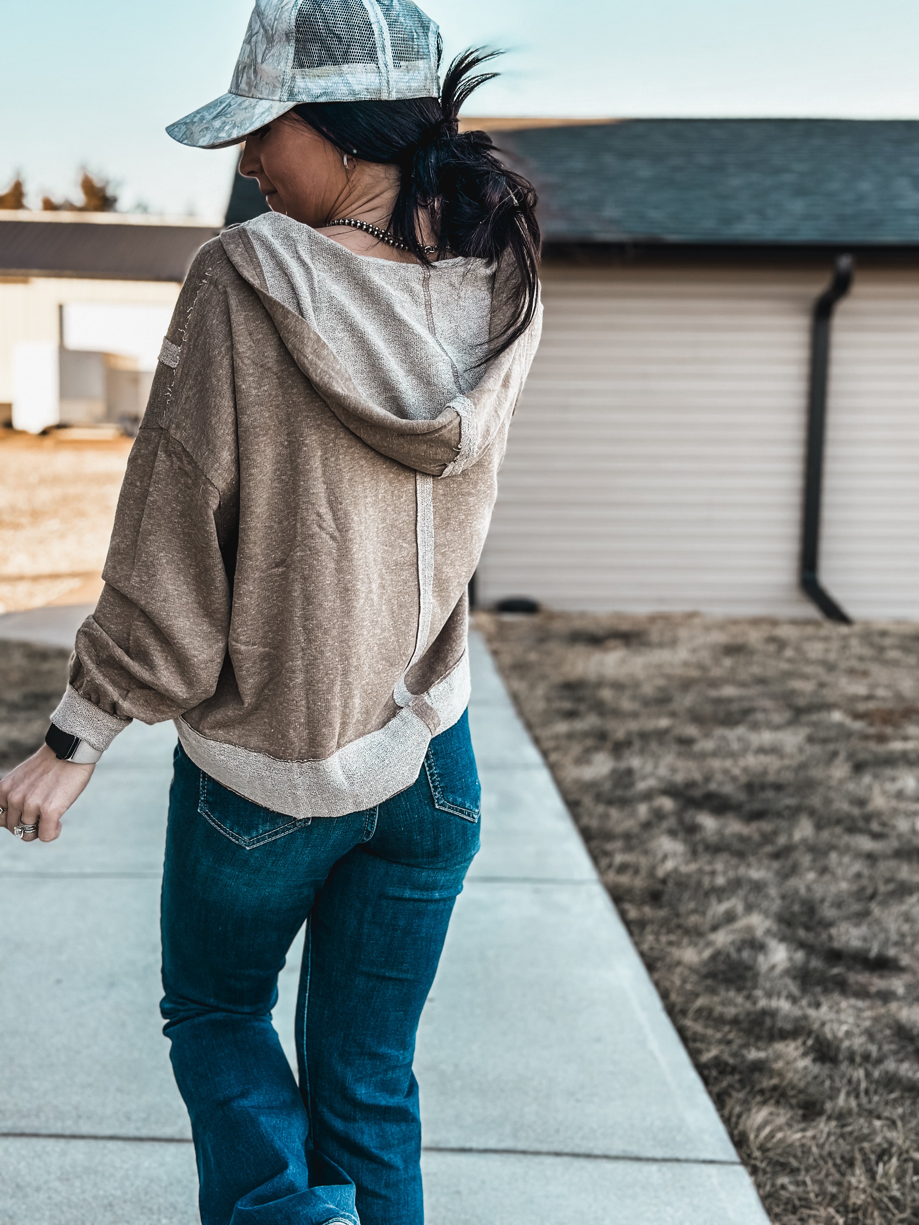 Brand Swoop Raw Hem Hoodie - Mocha Product form$32.00 Size Size chart S/M L/XL Free pickup in our shop(s) Quantity Add to cart