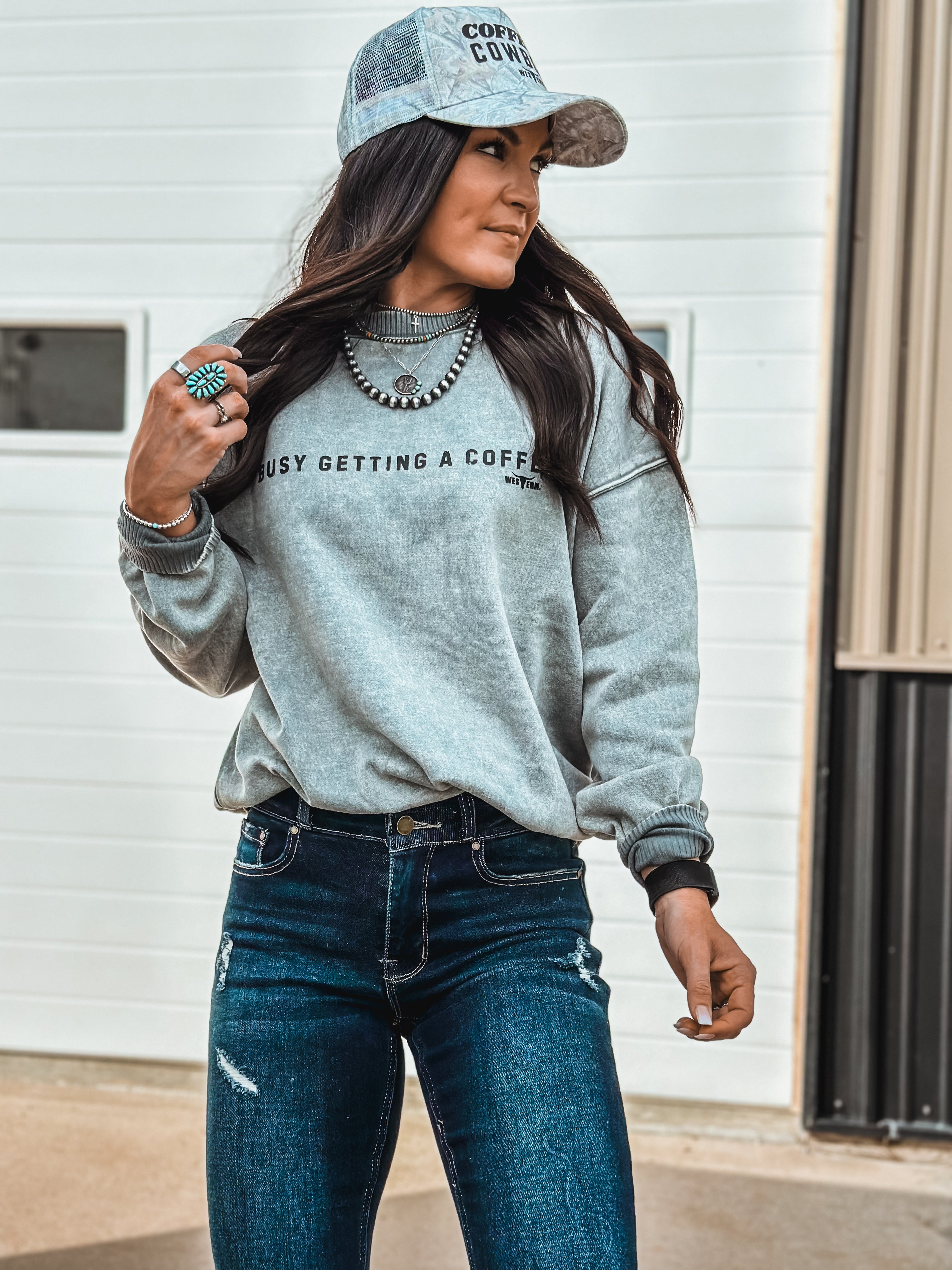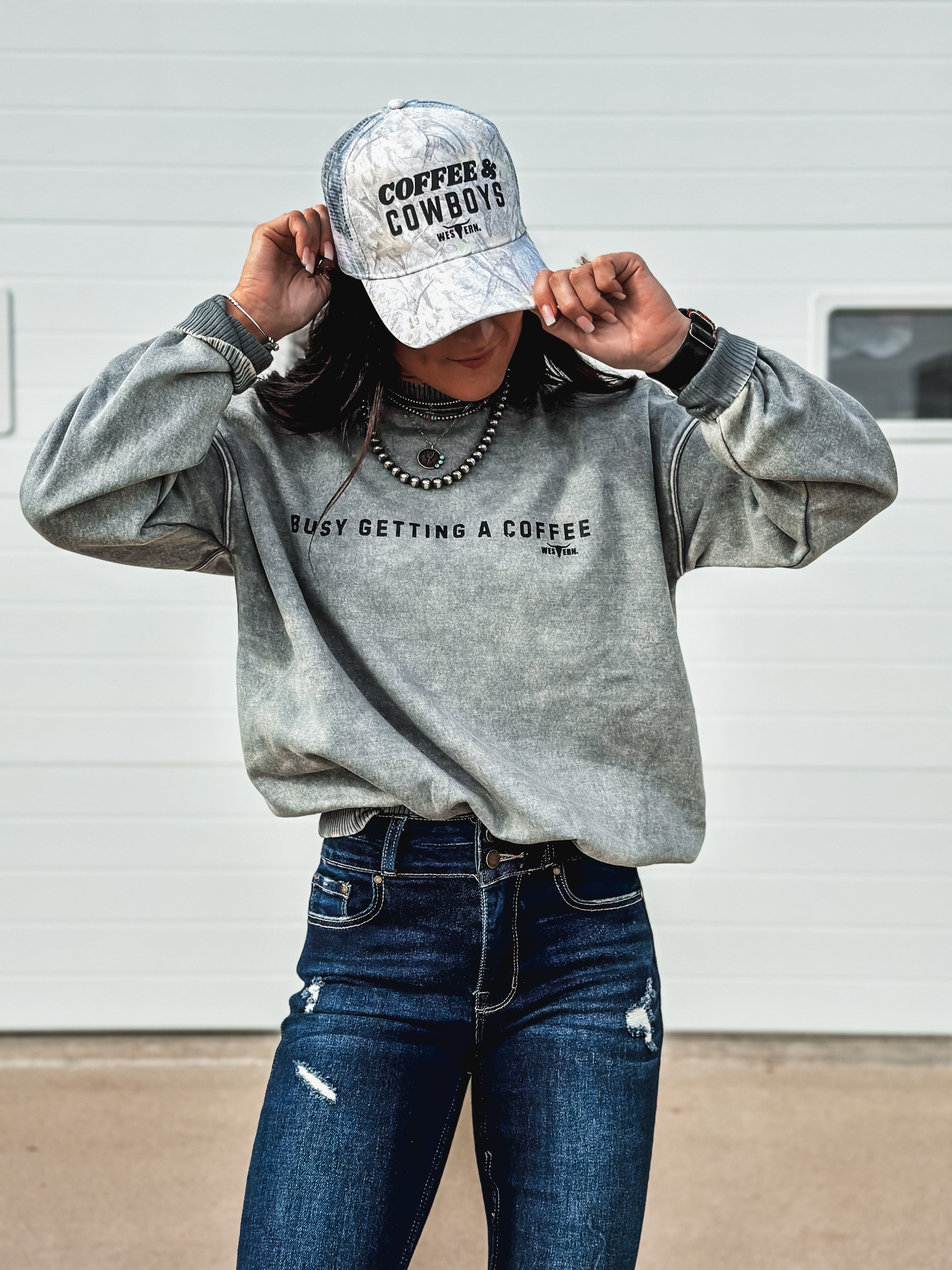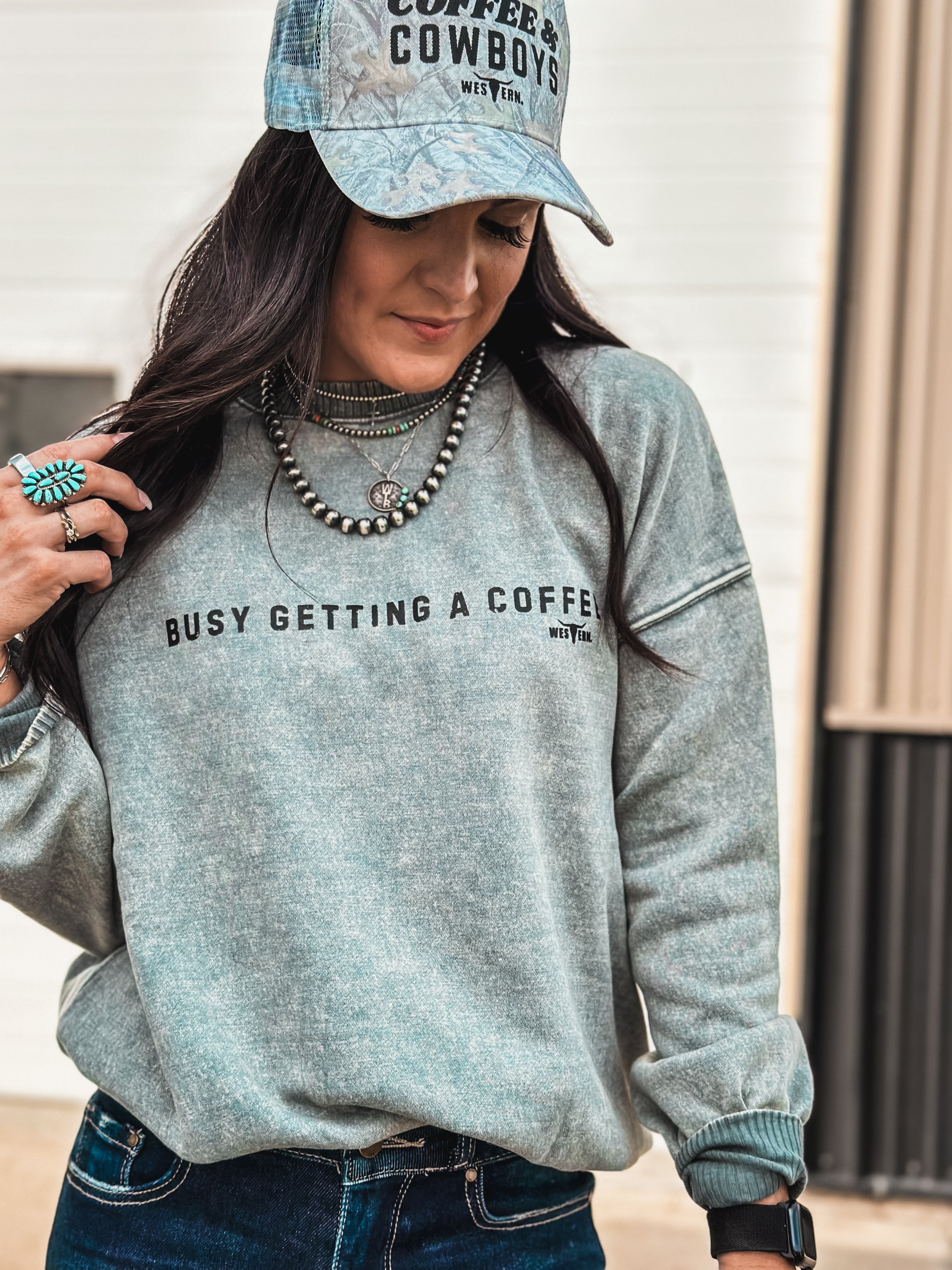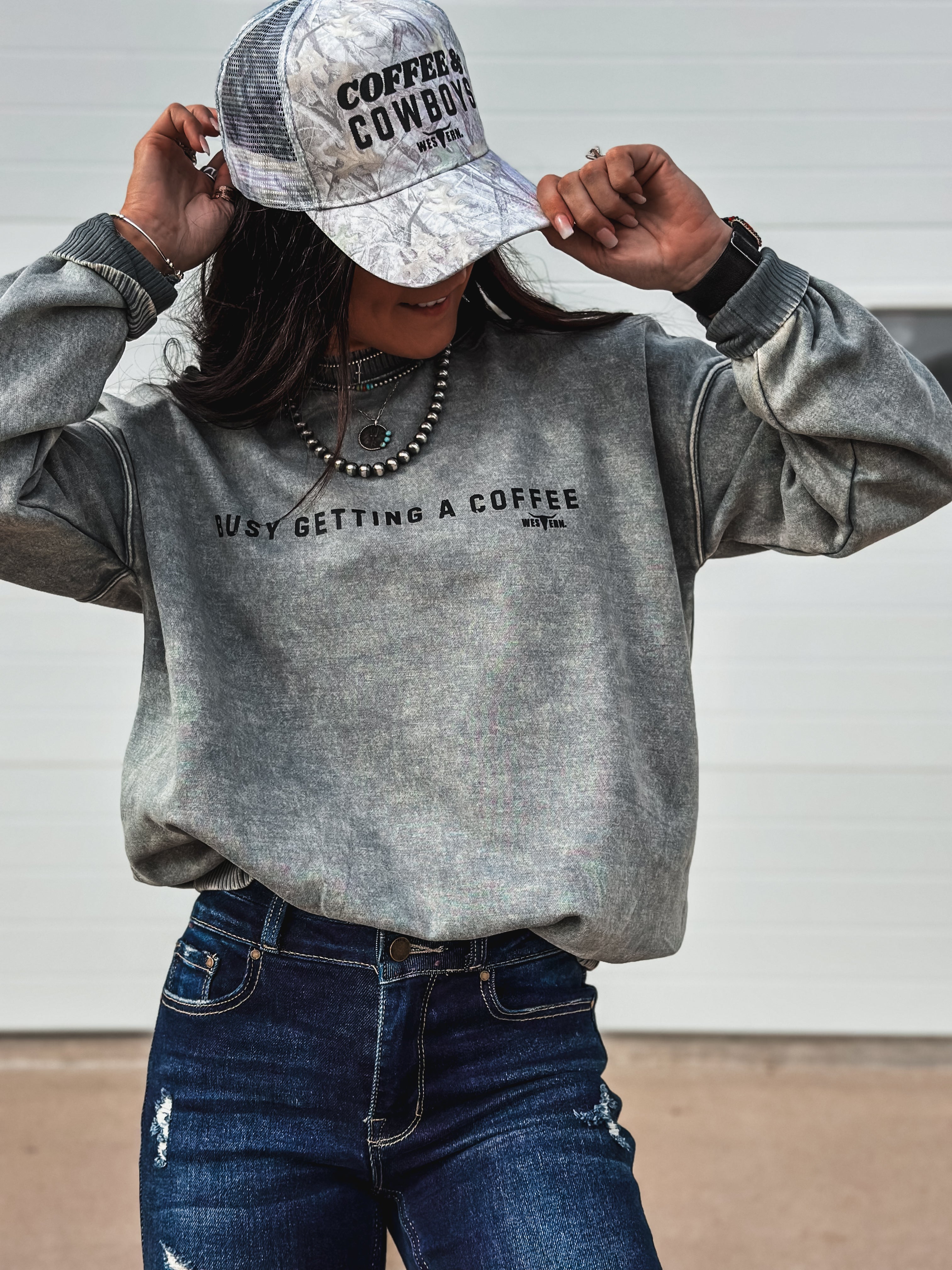 Busy Getting Coffee Crew - Ash Blue Product form$42.00 Size Size chart Small Medium Large Free pickup in our shop(s) Quantity Add to cart