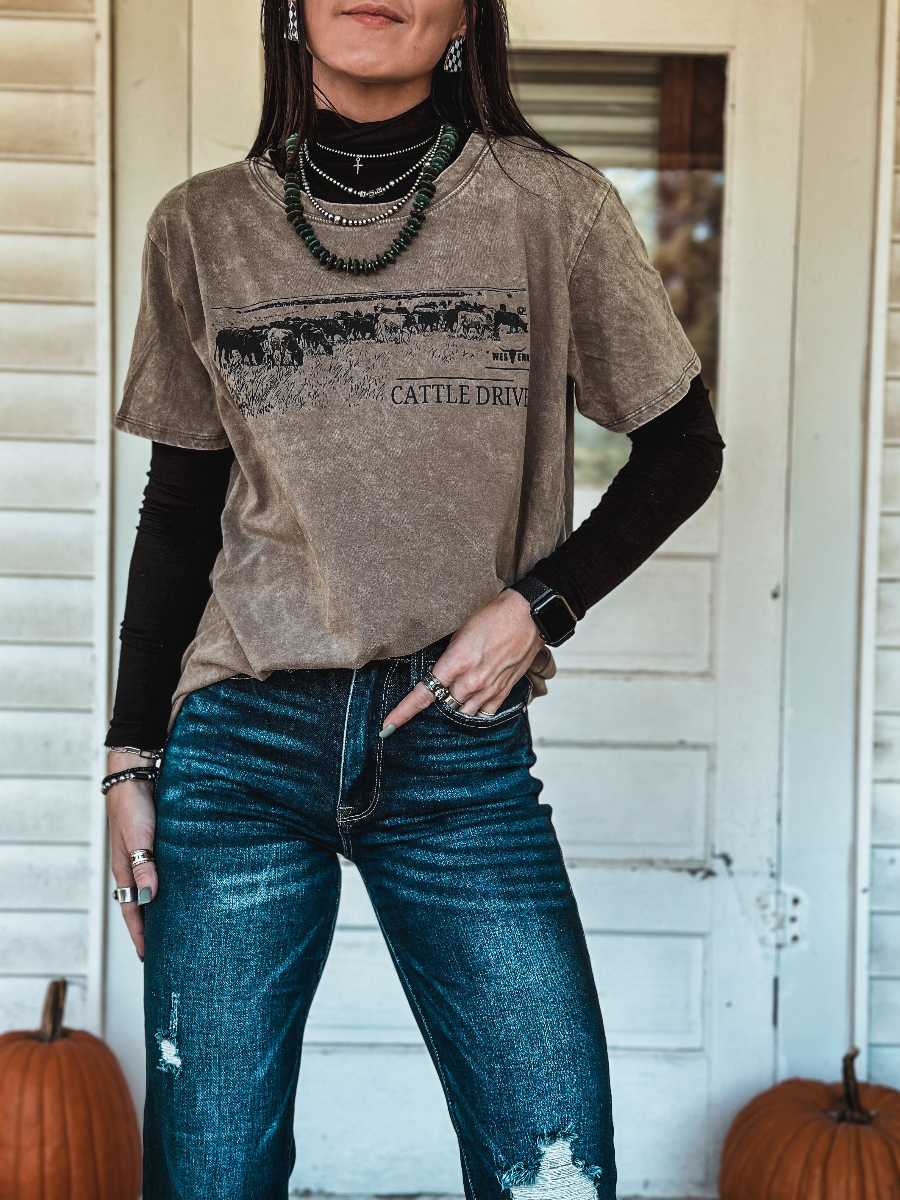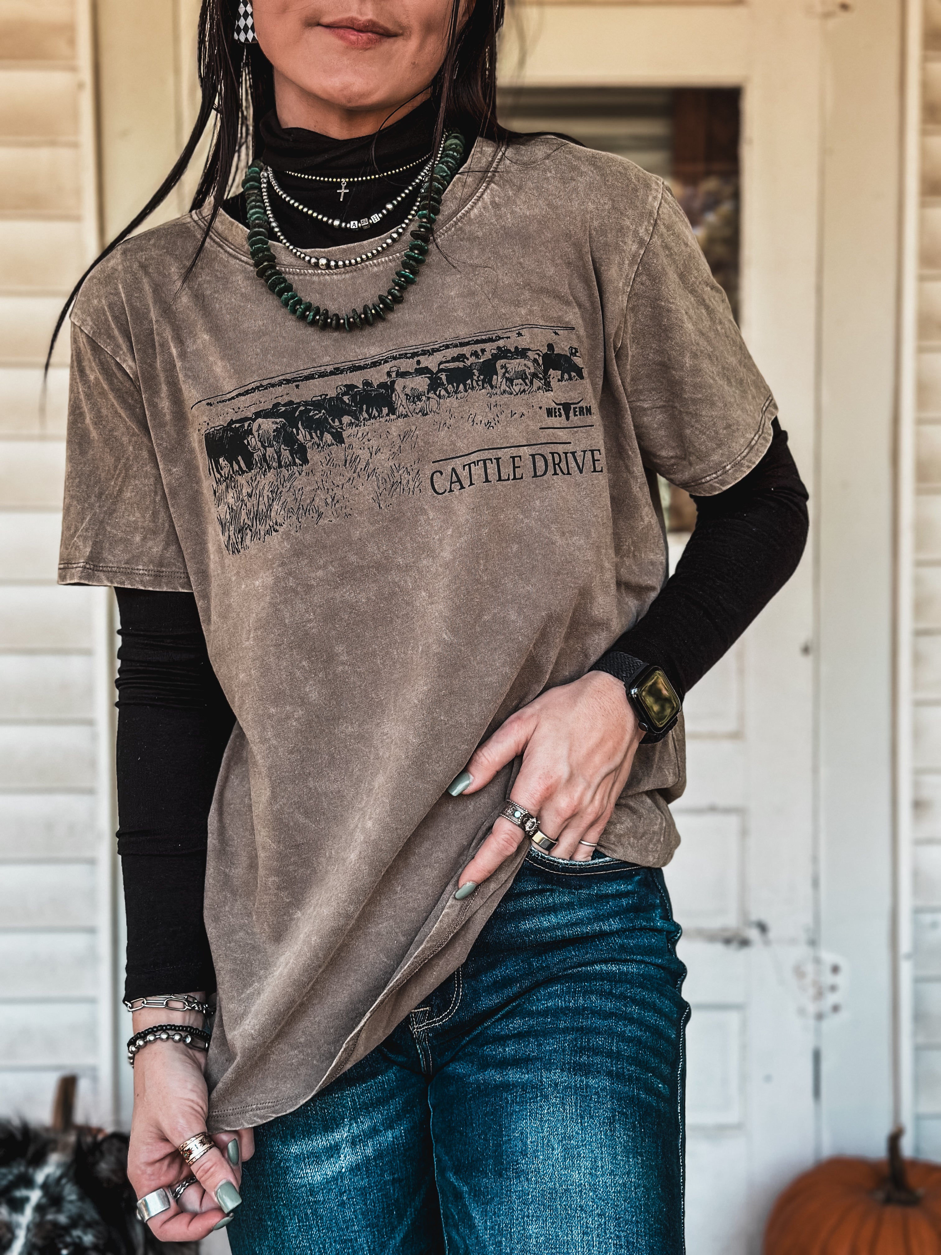 Cattle Drive Oversized T - Mocha Product form$36.00 Size Size chart Small Medium Large XL Free pickup in our shop(s) Quantity Add to cart