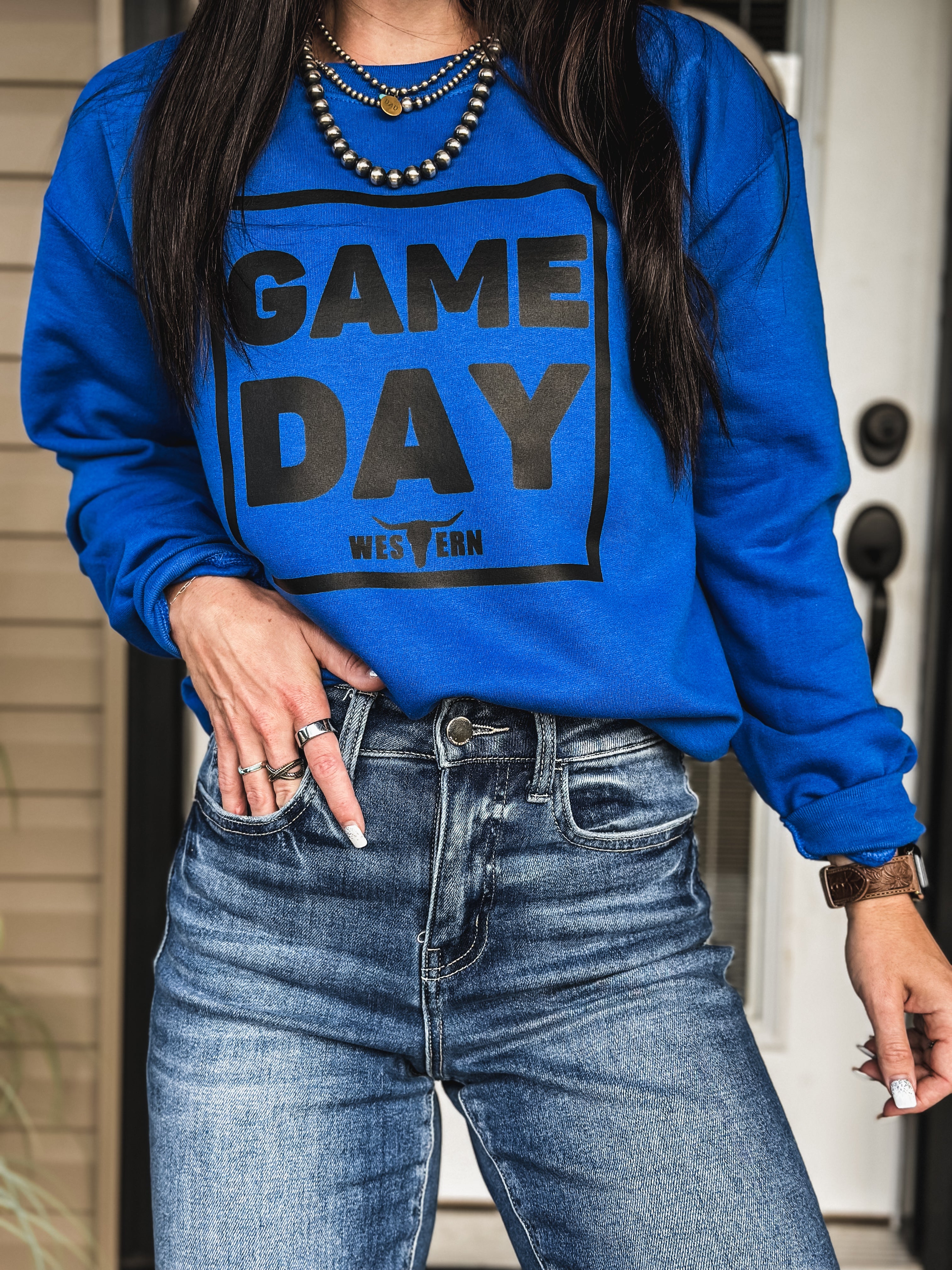 GAME DAY Crew - Blue Product form$40.00 Size Size chart Small Medium Large XL 2XL Free pickup in our shop(s) Quantity Add to cart
