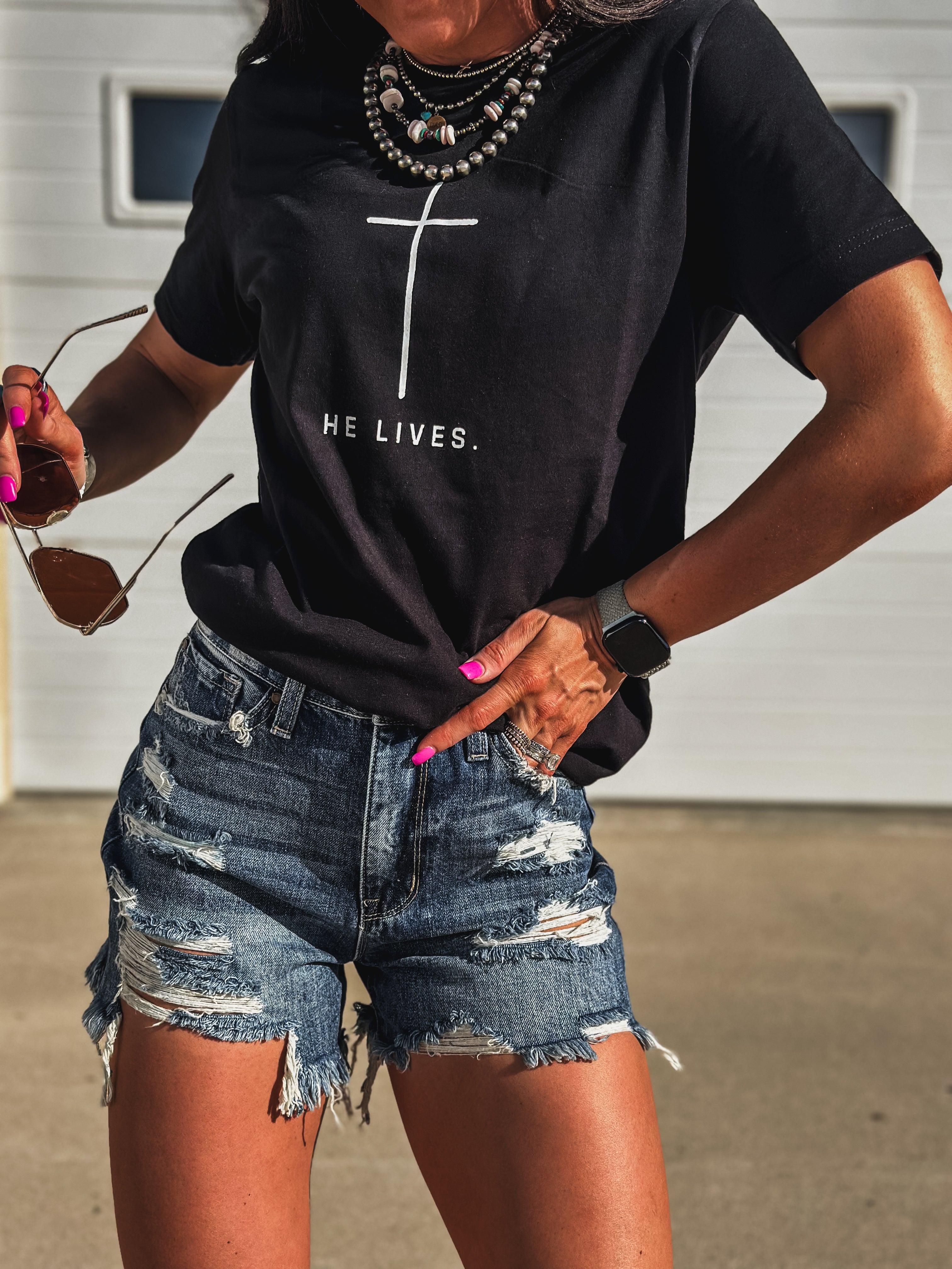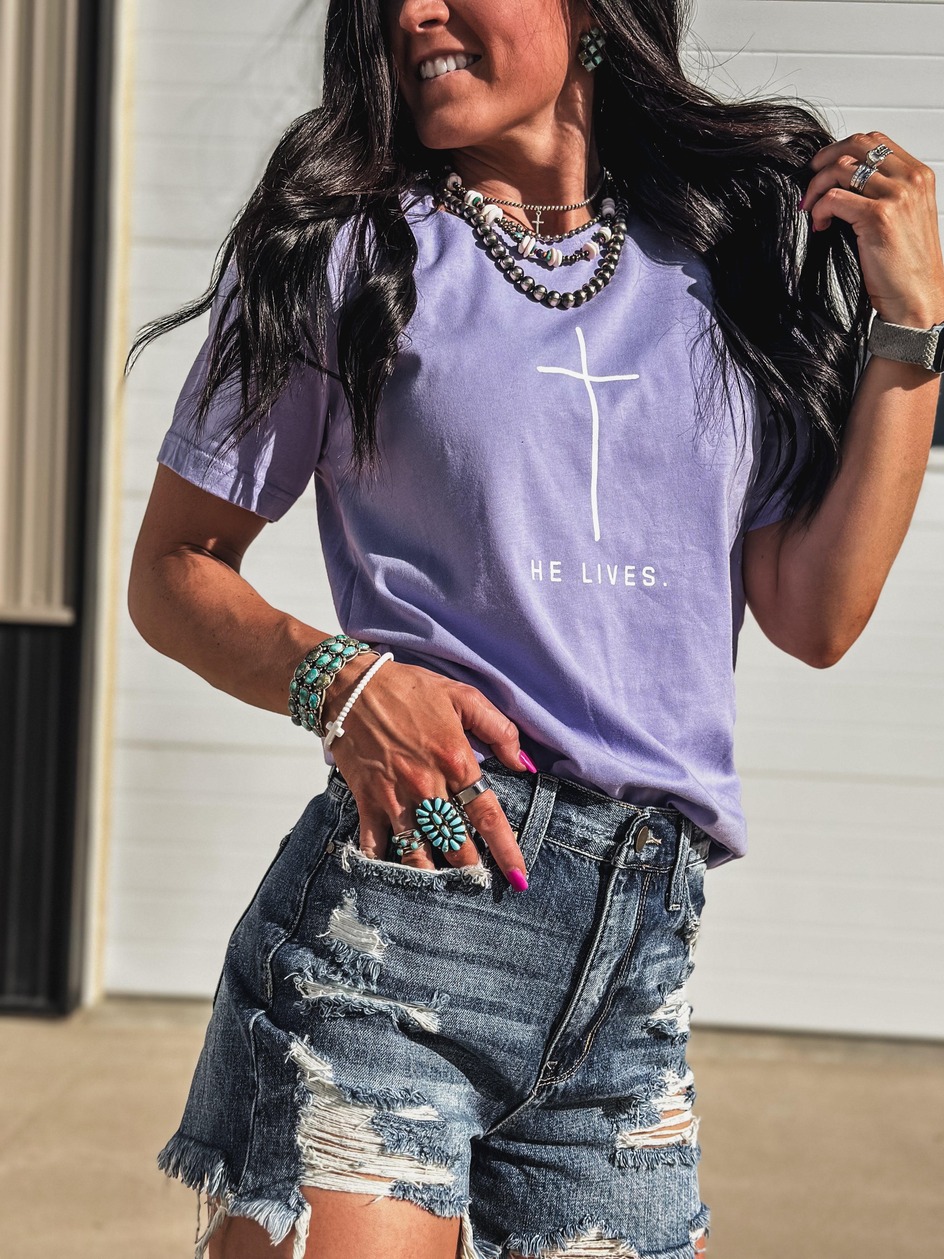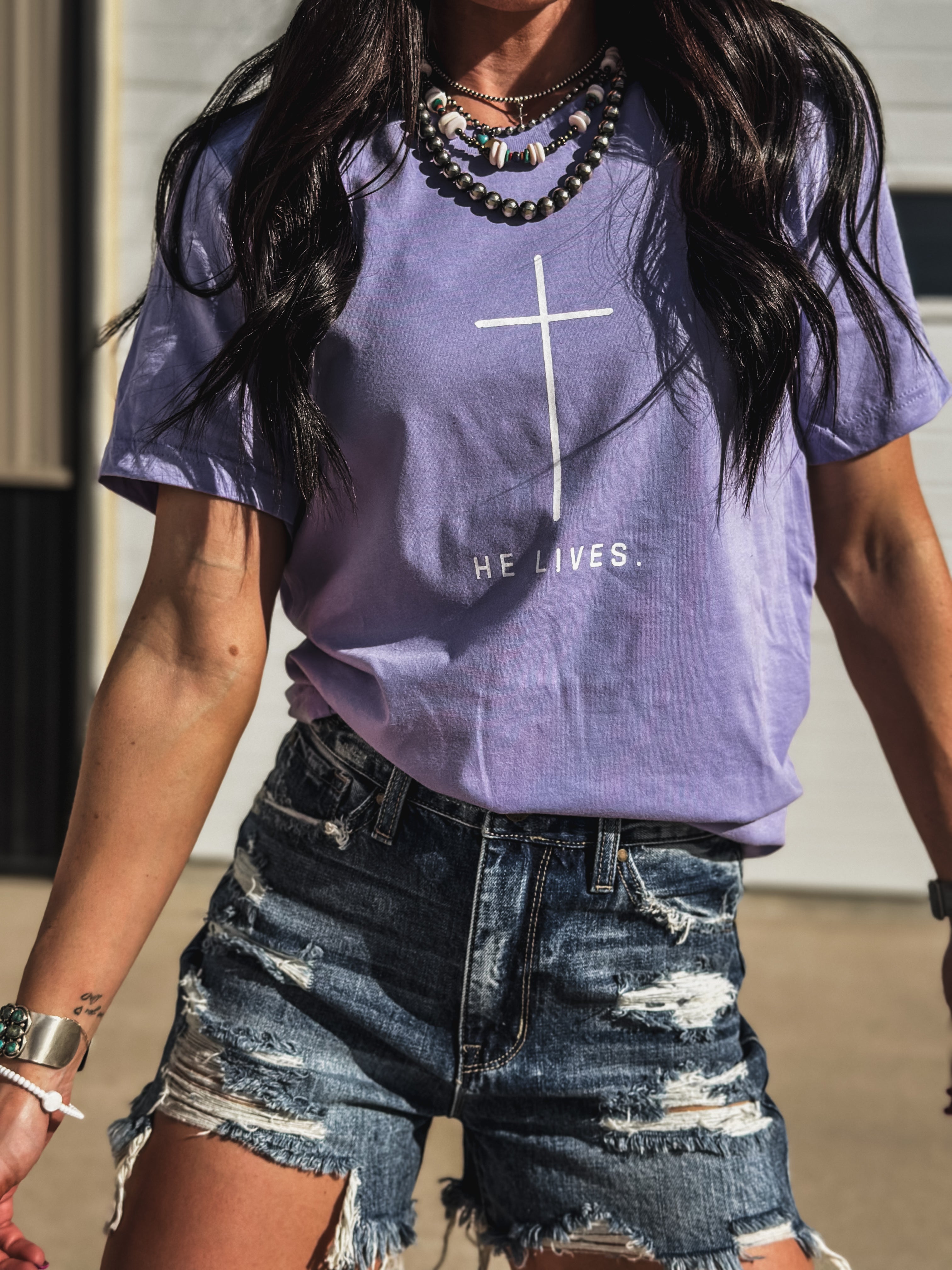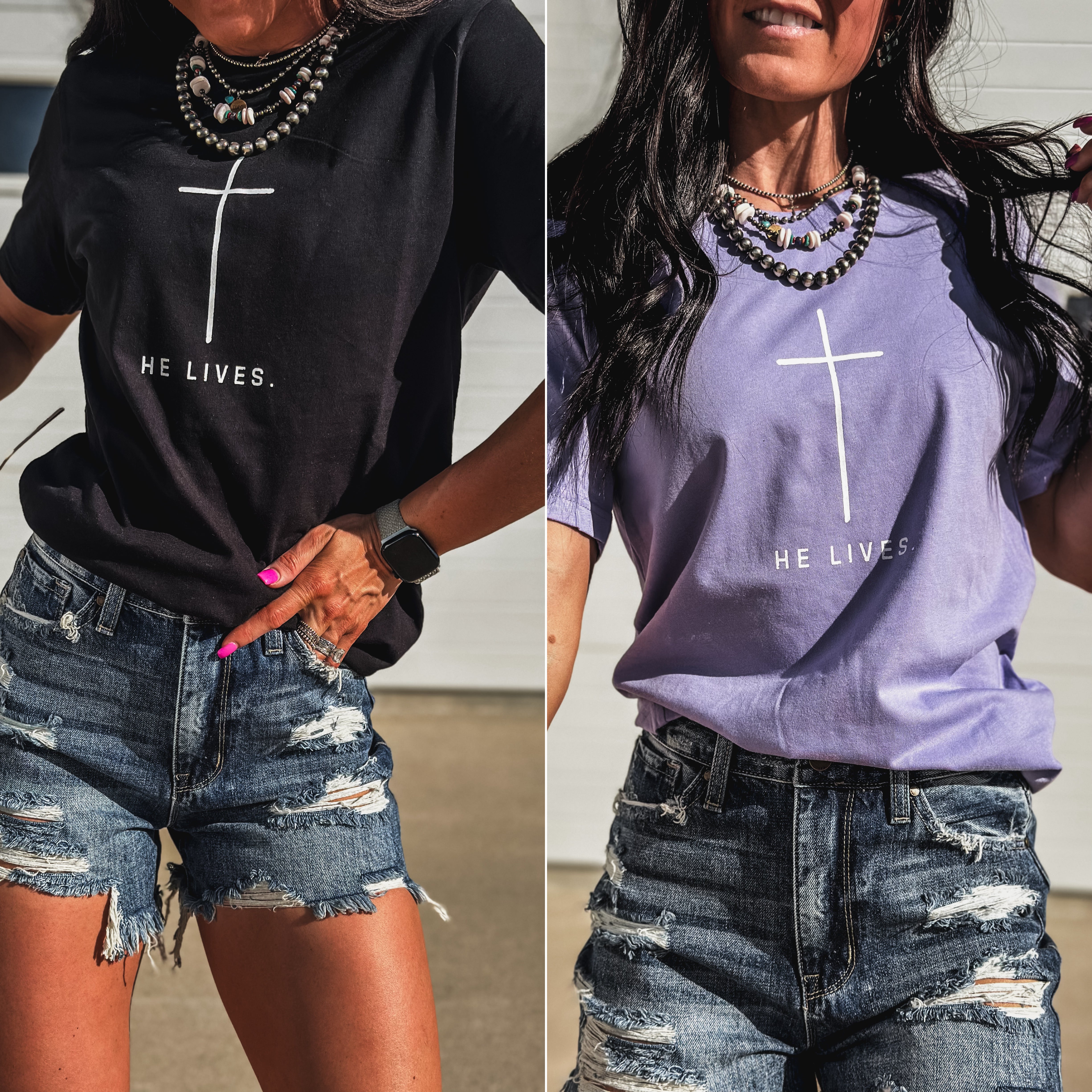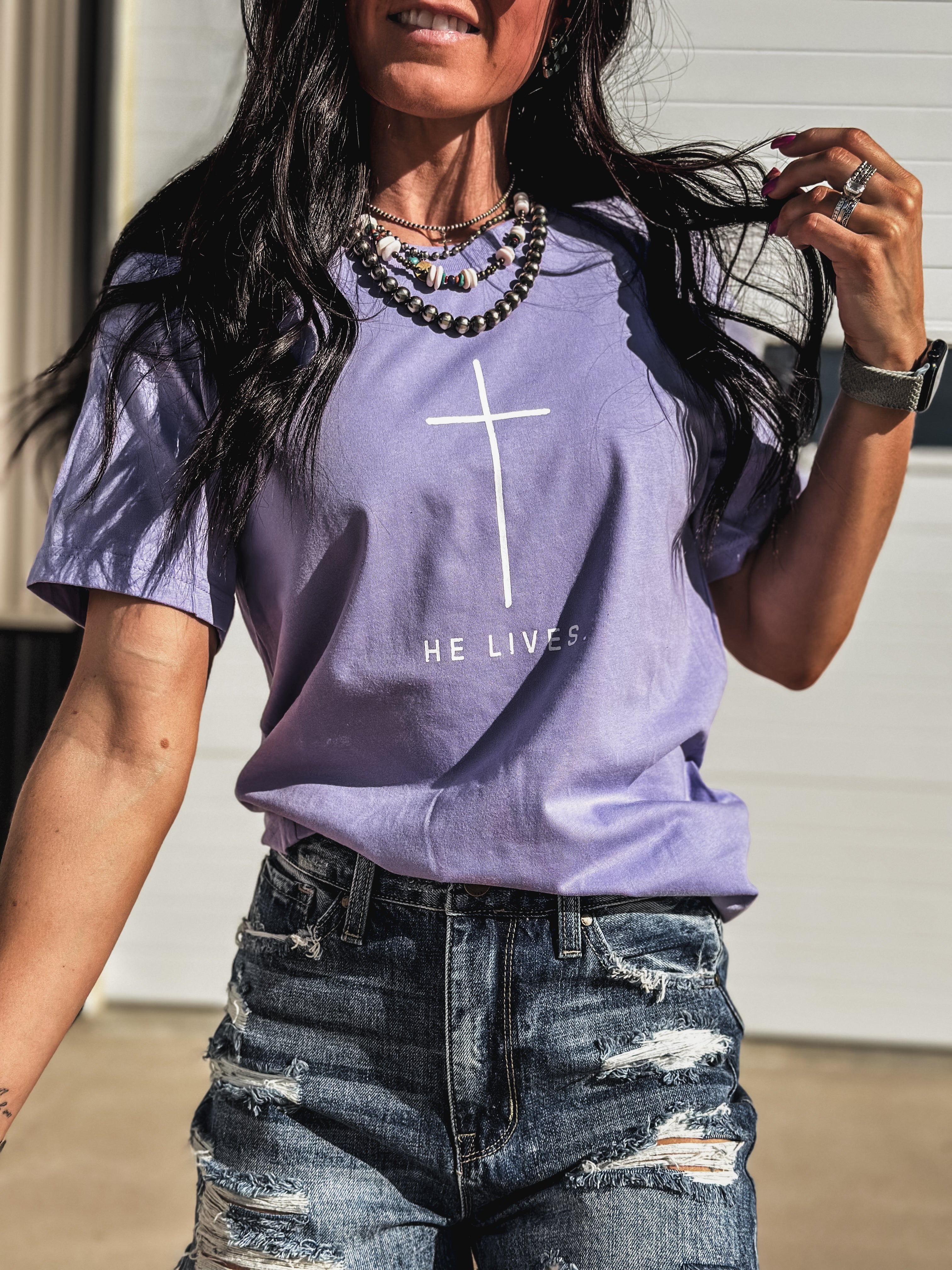 He Lives Product form$28.00 Black / Small Black / Medium Black / Large Black / XL Black / 2XL Dark Lavender / Small Dark Lavender / Medium Dark Lavender / Large Dark Lavender / XL Dark Lavender / 2XL ColorBlack Size Size chart Small Medium Large XL 2XL Free pickup in our shop(s) Quantity Add to cart