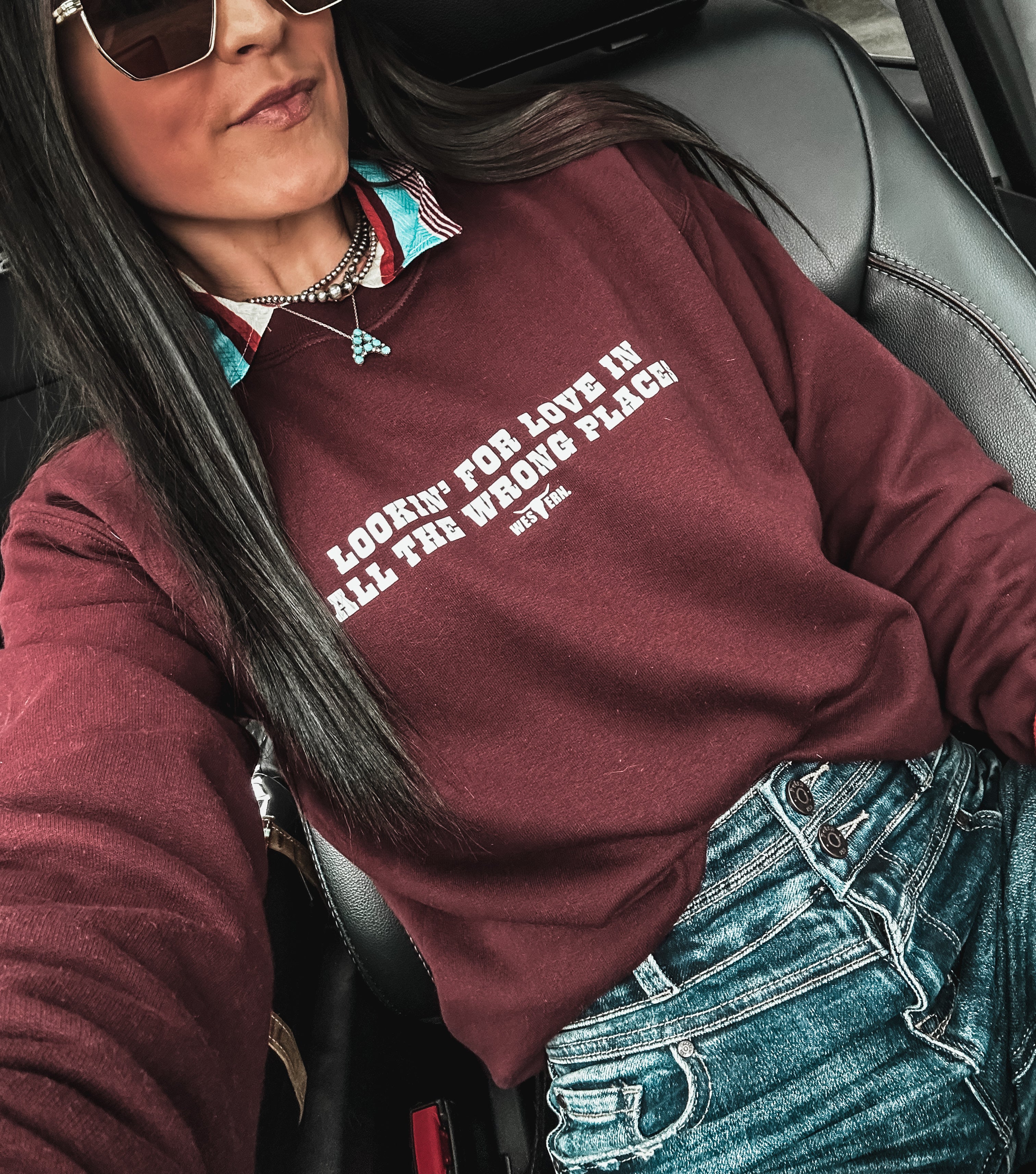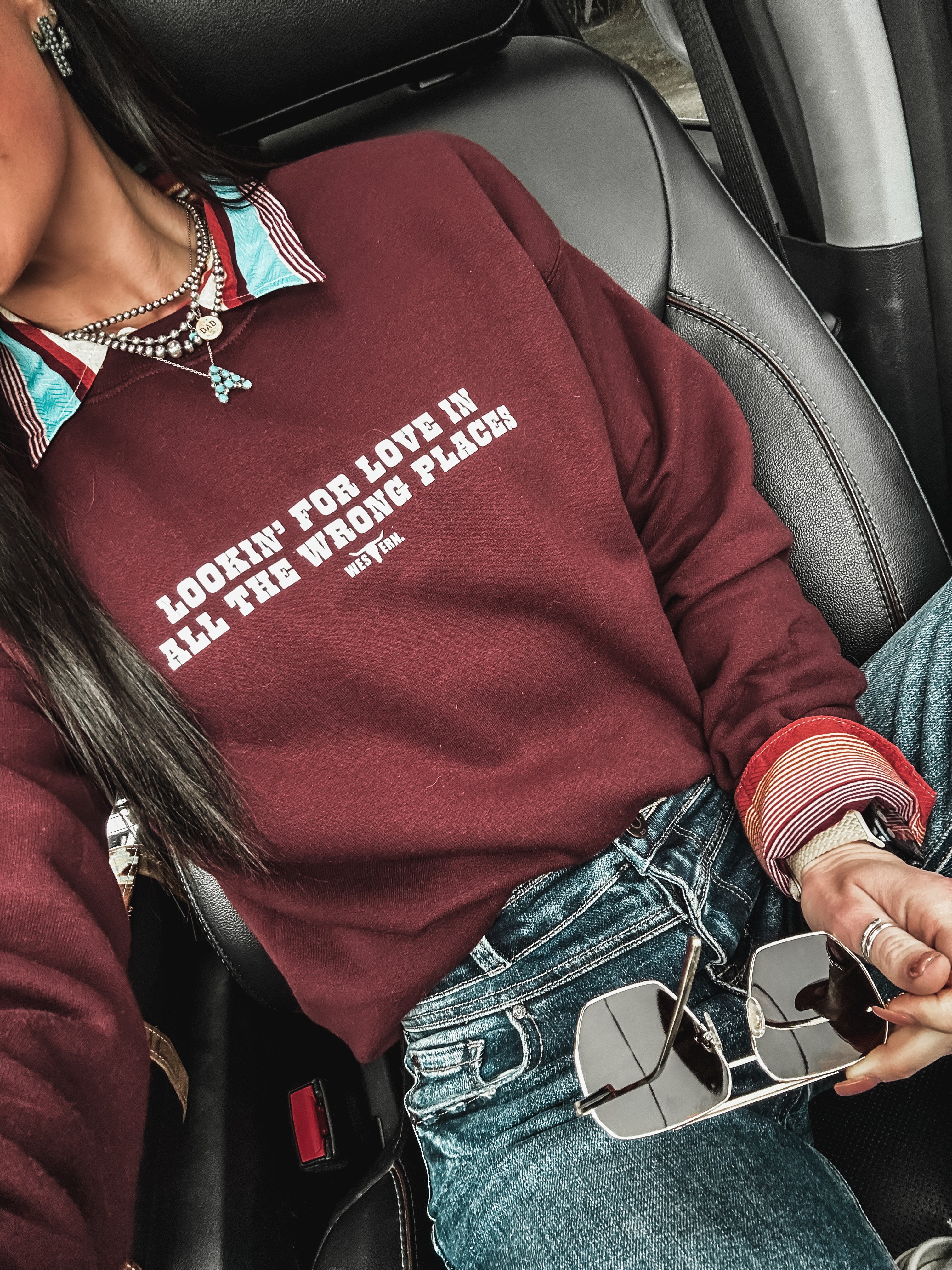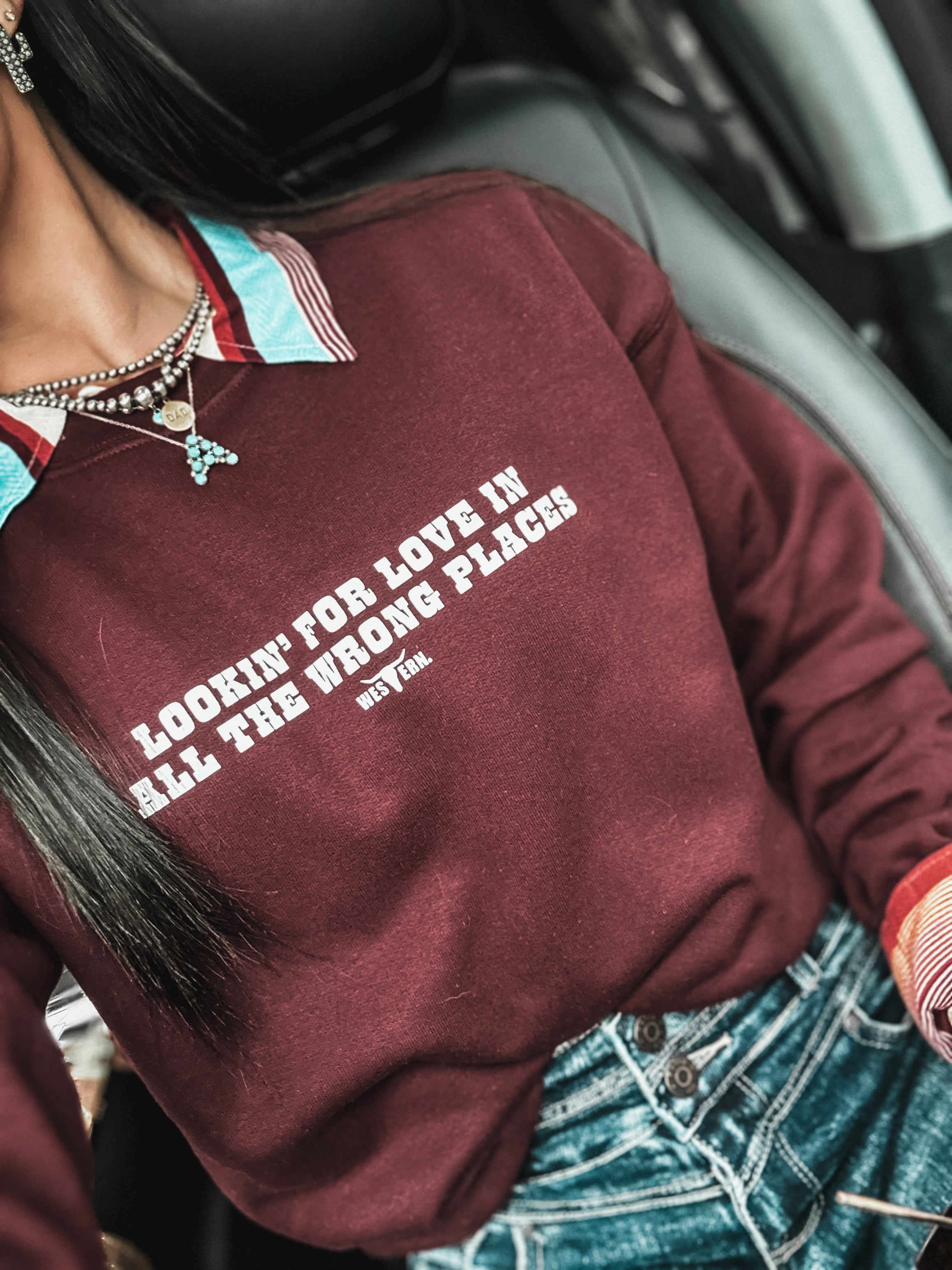 Lookin' For Love Crew - Deep Maroon Product form$40.00 Size Size chart Small Medium Large XL 2XL Free pickup in our shop(s) Quantity Add to cart
