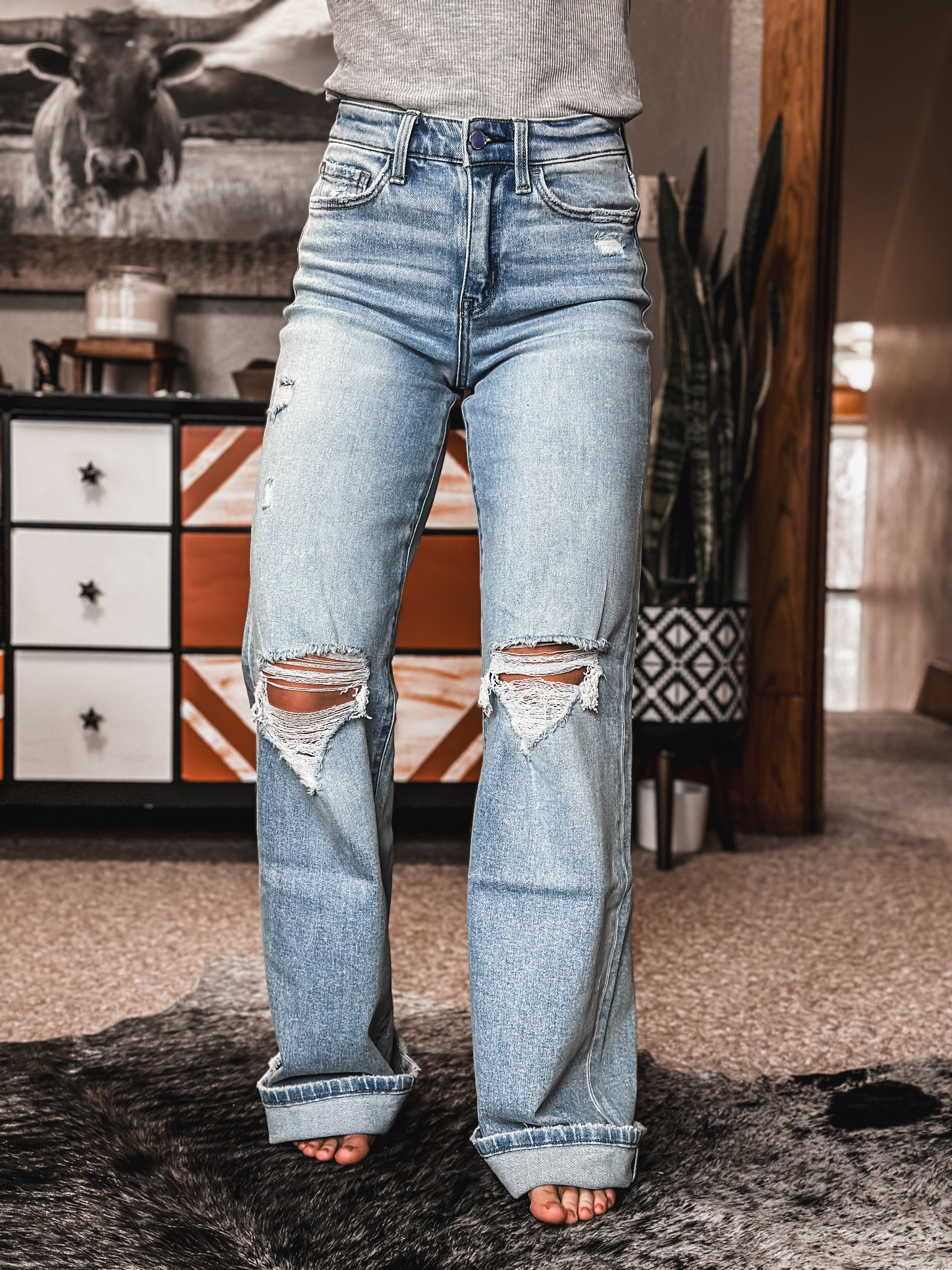 Flying Monkey High Rise Distressed Wide Leg