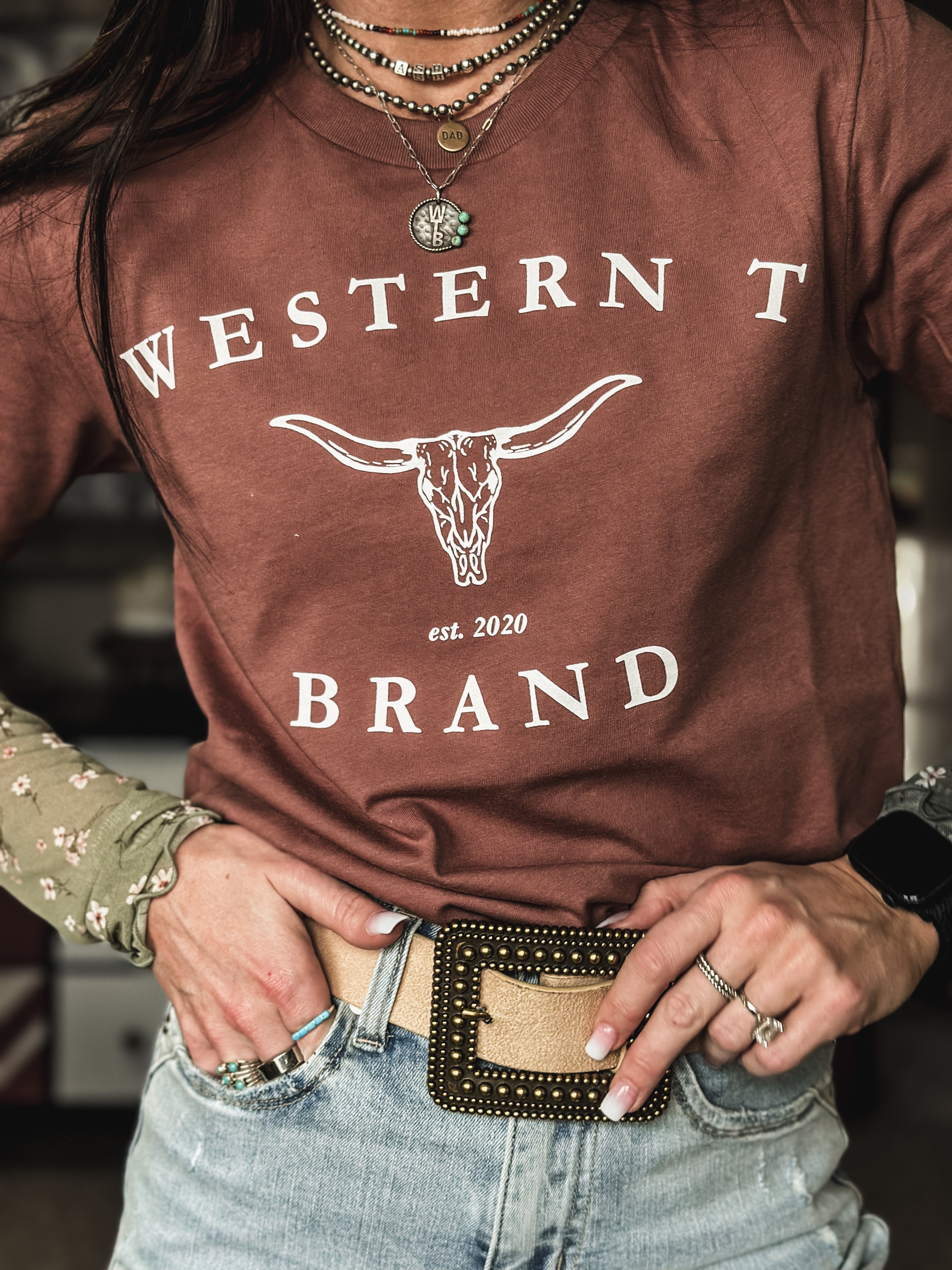 Western T Brand Longhorn - Brick Product form$28.00 Size Size chart Small Medium Large XL Free pickup in our shop(s) Quantity Add to cart